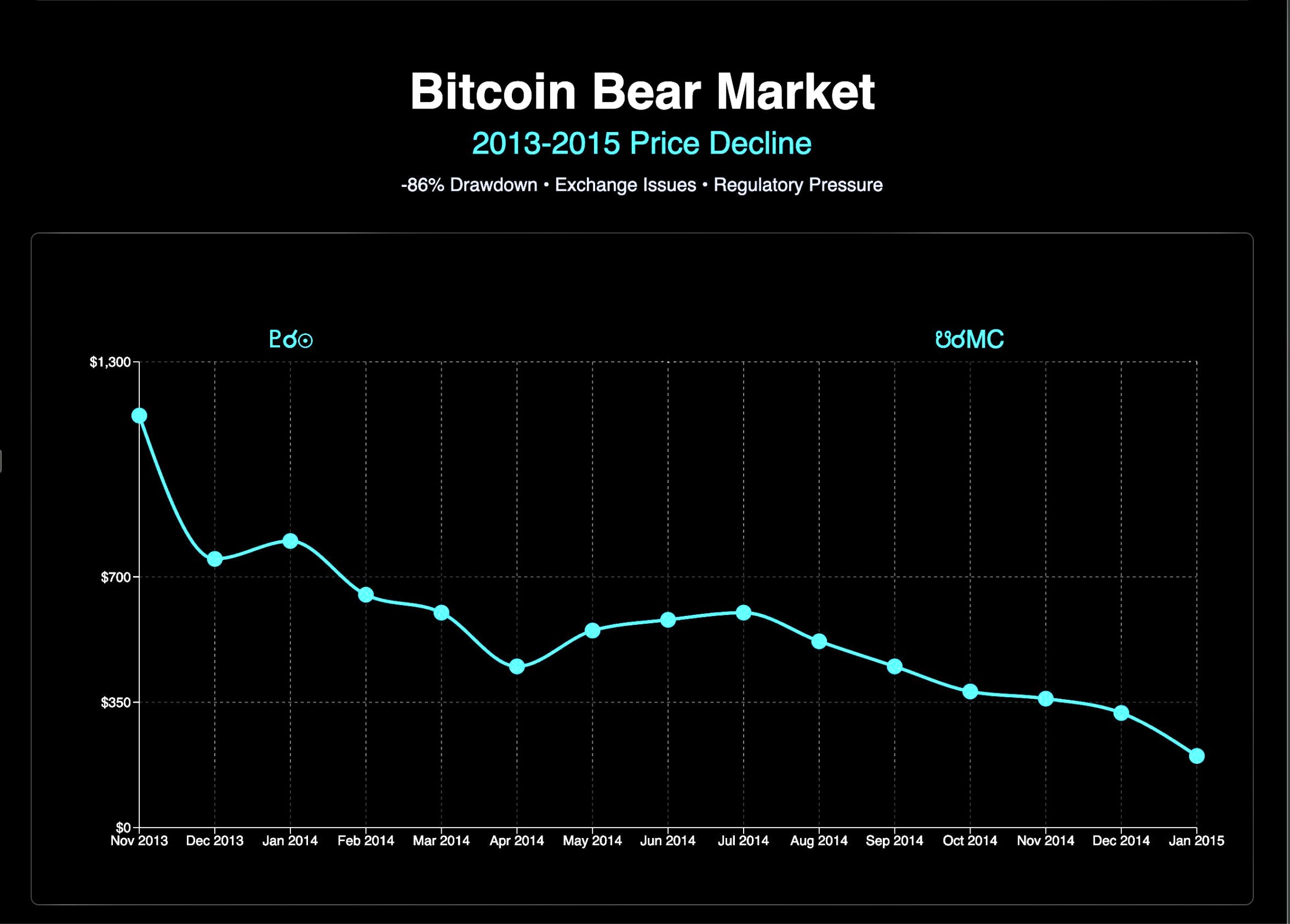 In contrast, some of Bitcoin’s biggest loss periods correlate with the astrology too. From November 2013 to Jan 2015 Bitcoin lost about −86% after the late‑2013 peak above $1,100, culminating in a prolonged decline through early 2015 as exchange issues and tightening regulation weighed on sentiment.