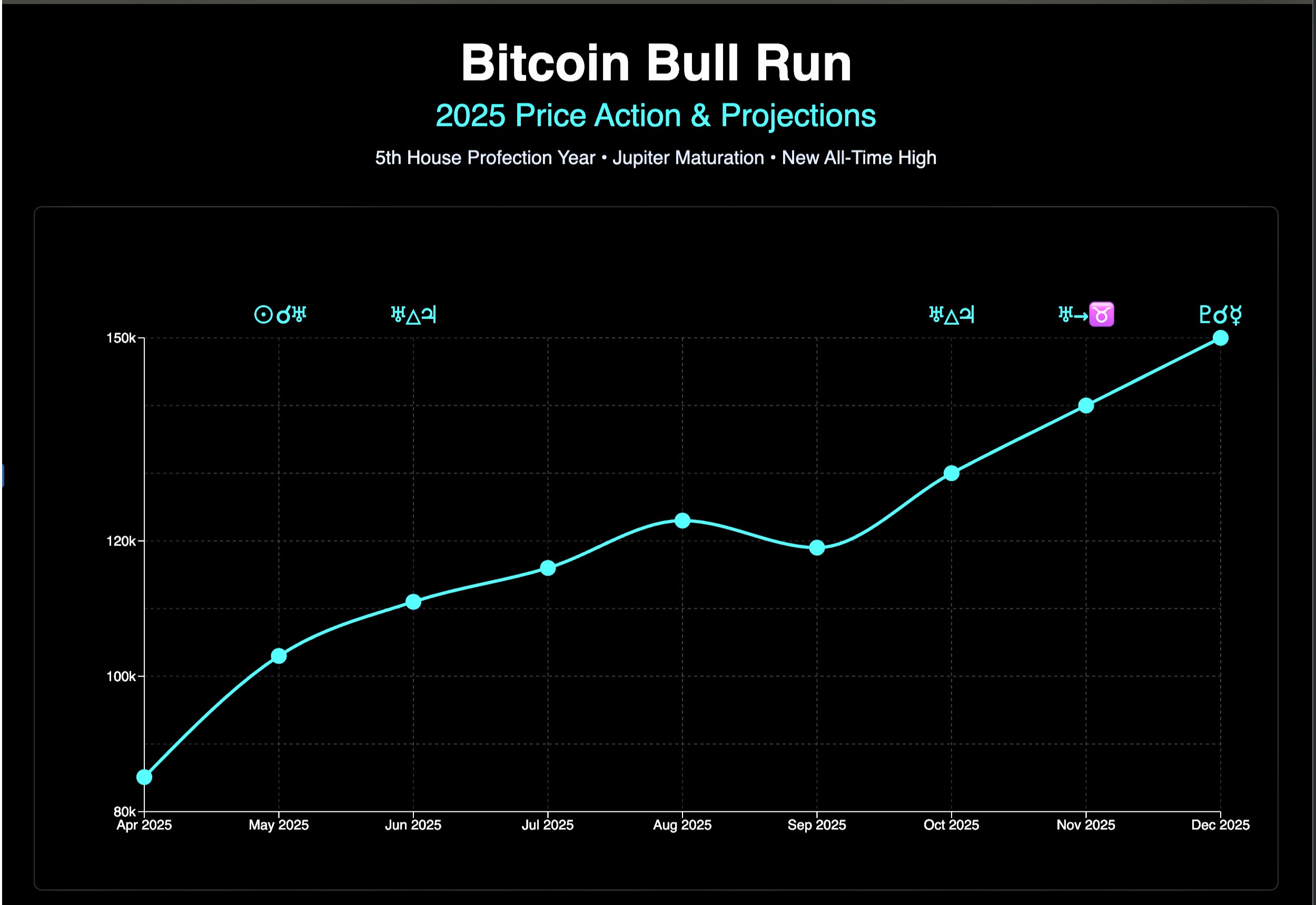 Bitcoin is up 30% year-to-date, but with the combination of a 5th house profection year, a Jupiter maturation and a few key positive transits upcoming in Q4 of 2025, I believe we are due to see Bitcoin set an expansive new all time high before the end of 2025.