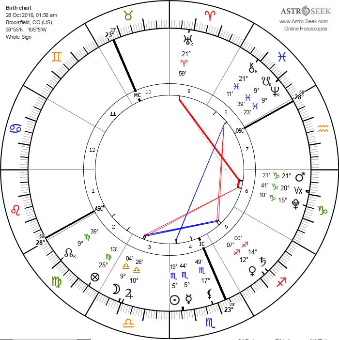 We have a Leo ascendant, with the ruler of the ascendant being the Sun, in the 4th house in Scorpio. The Sun lends this project a purpose and a driving force, located in the 4th house, associated with private places, homes, comfort zones, and the “underground.” This is complemented by the sign of Scorpio, which is associated with all things secret, hidden, private, and obscured.
