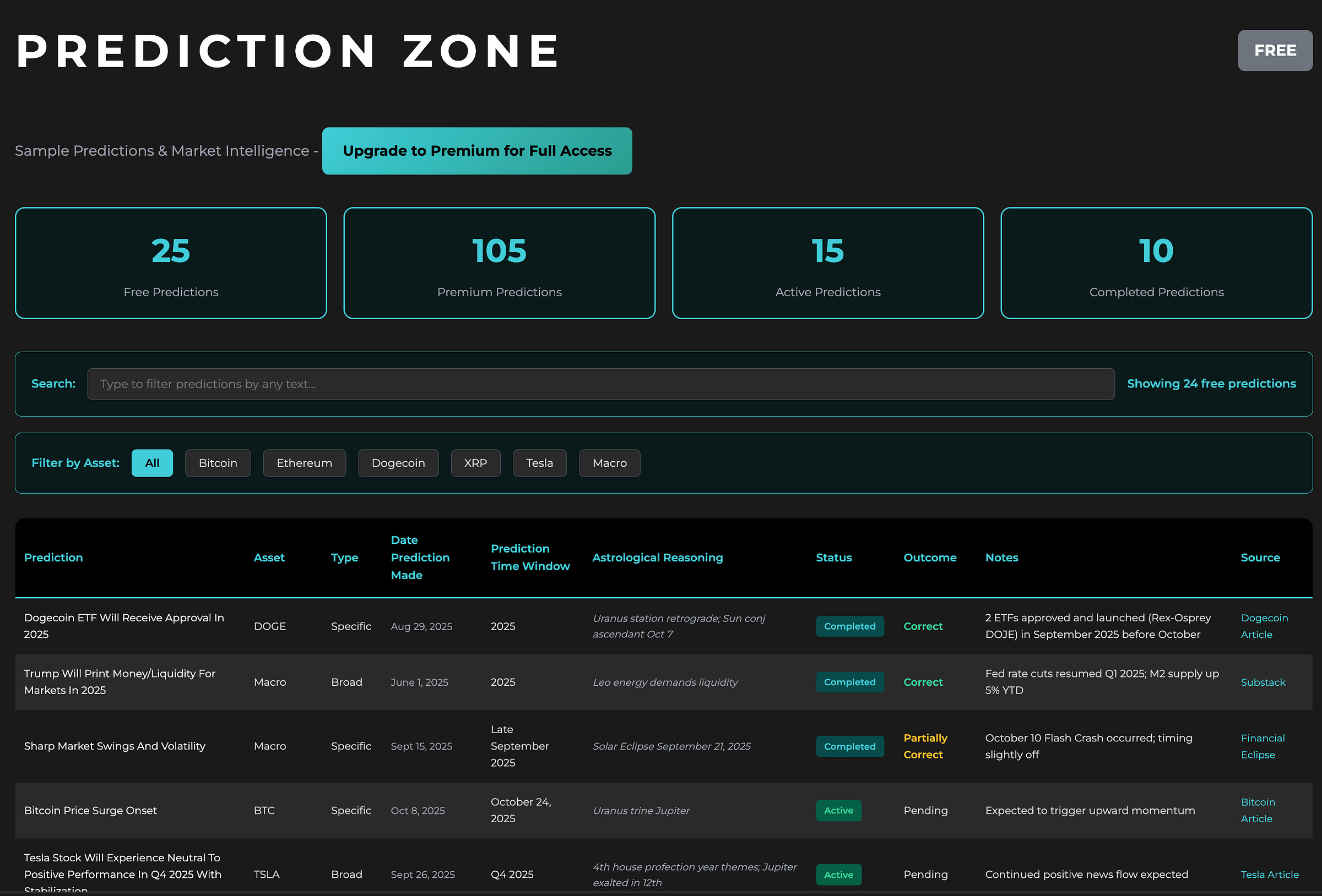 Step into the Premium Prediction Zone for comprehensive financial predictions, detailed astrological justification, and ongoing outcome updates on all the predictions I’ve made so far. This resource is reserved exclusively for paid members.