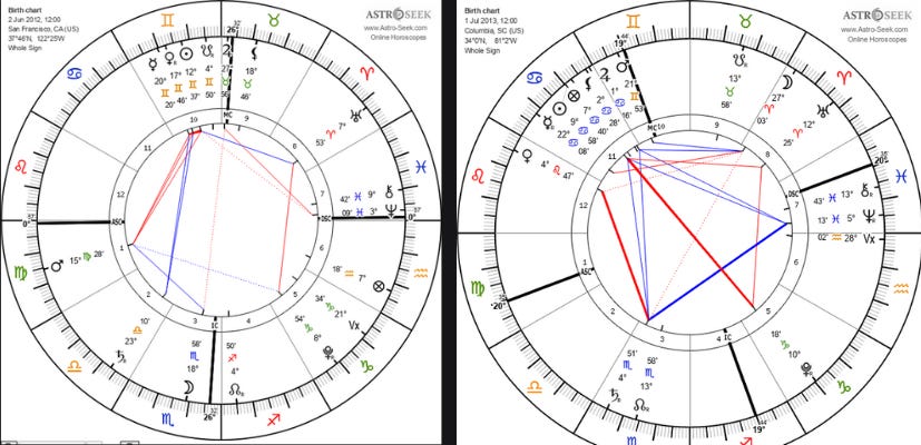 The problem is, they both seem to work well, and a decent astrologer could find transit aspects that support both charts. I even have a highly competent colleague who had to backtest both using a unique system, as they both “seemed” to work at first.
