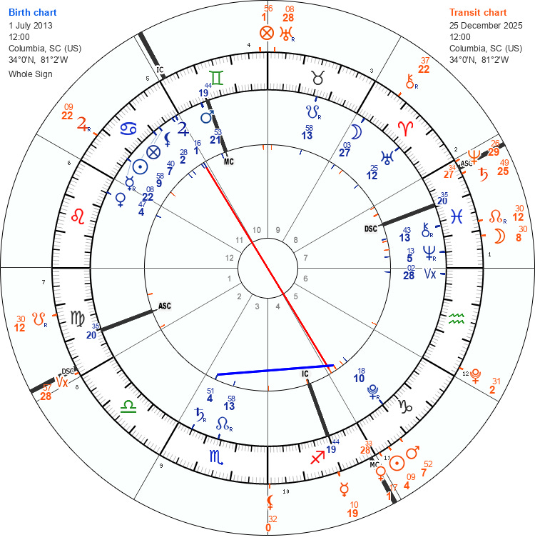 The profectional cycle also fails to support this timing. According to this chart, the 1st house profection year would not begin until August 4, 2025. The July pump would have occurred in a 12th house profection year, which is typically a hidden or dissolving phase, not one of major visibility or breakthrough. Indeed, since August 2025, XRP has only risen by about 1%.