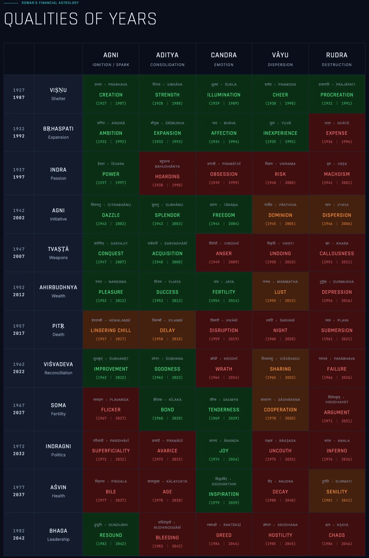 We have already seen echoes of this energy, such as the Iran invasion, which has set the geopolitical and economic tone for the rest of the year. Rudra rules the destructive element, while Visvadeva rules the collective, universal aspect of the year. Therefore, this destruction will not be localized. This is an overarching theme that will impact us all financially.