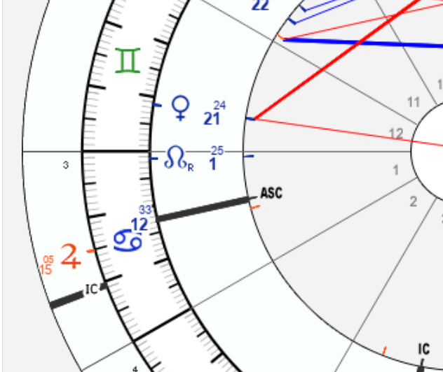 Looking at the financial axis of the 2nd and 8th houses, the 2nd house ruler is Jupiter, exalted in Cancer in the 9th, whilst Venus is placed in the 8th house, ruled by Mercury in Taurus in the 7th. This looks pretty strong for wealth indications. The ruler of the 10th house of career and reputation is the Sun, placed on the descendant in Taurus. Scorpio, a sign associated with underground metals, is the ascendant sign, with the ruler of the ascendant, Mars, representing strength and power, in his own sign of Aries in the 6th house. The 5th house of speculation is ruled by Jupiter, exalted in the 9th. This looks pretty bullish.