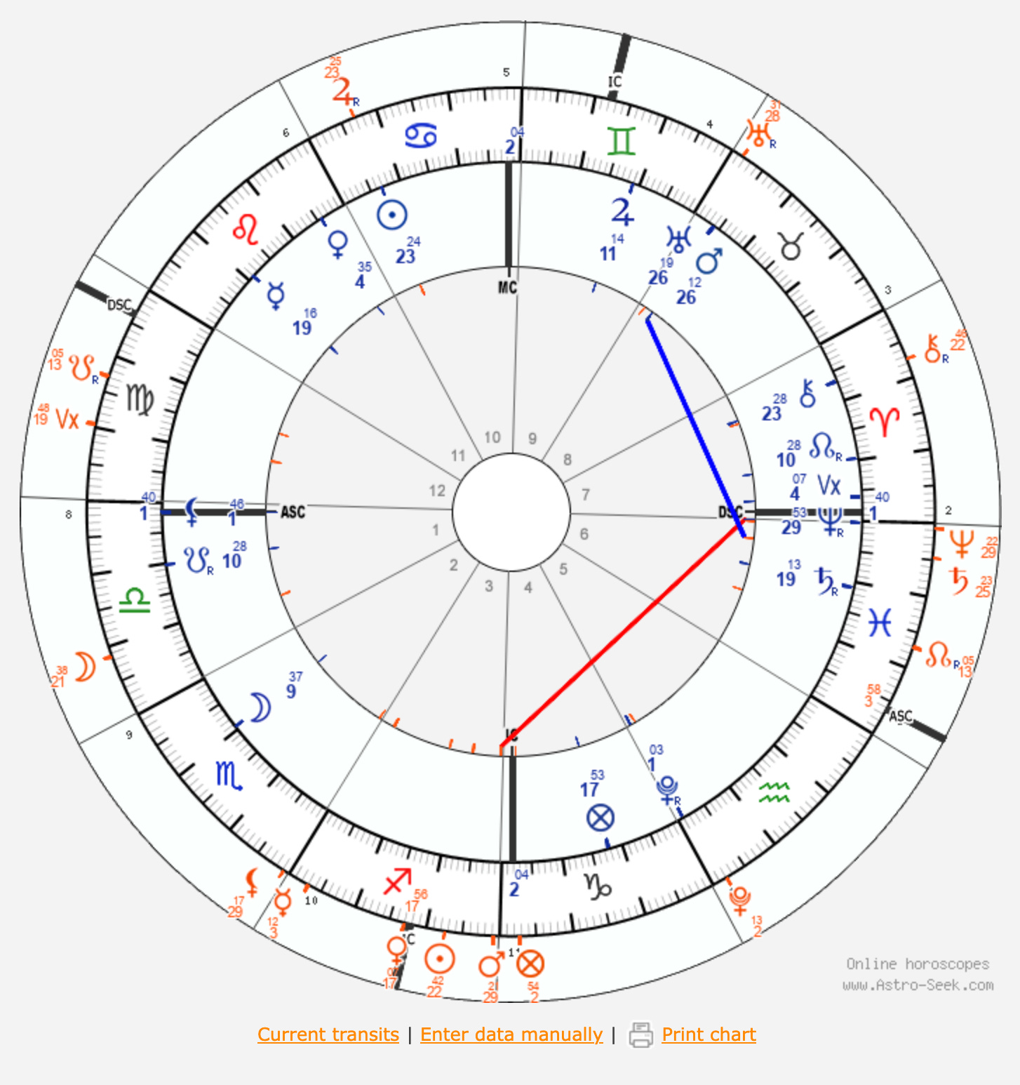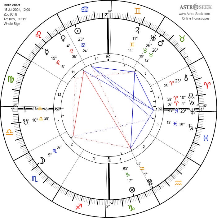 Leo Ascendant: This emphasizes radiant leadership but places the Sun and key planets in the 12th house of loss, dispersion and “bad spirit”.