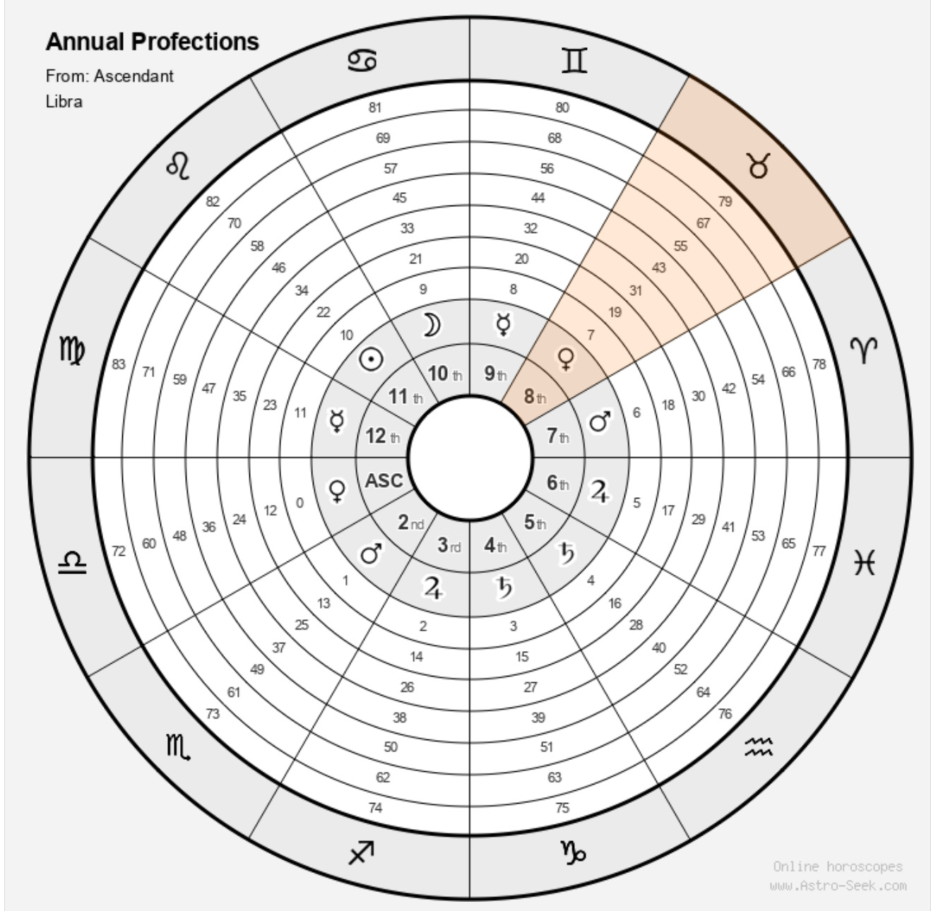 We see that for the pound, for the year from 27th July 2025 to 27th July 2026, it is 331 years old and therefore in an 8th house profection year until 27th July 2026. This sets the background theme for the pound for the year. The 8th house is the house of crisis, change, deep psychology, investments, other people’s money, and wealth that is hidden behind the scenes. Ancient Hellenistic authors consistently link the 8th house with death, inheritances, debts, grief, and anxieties.