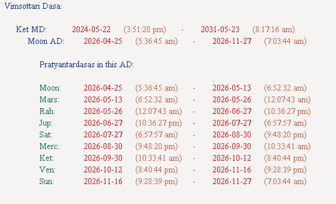 As you’ll be aware, the Vedic Dasha system simply creates timestamps in a person or asset’s life like chapters in a book, and we can use the Dasha system to gain more confidence in our predictions.