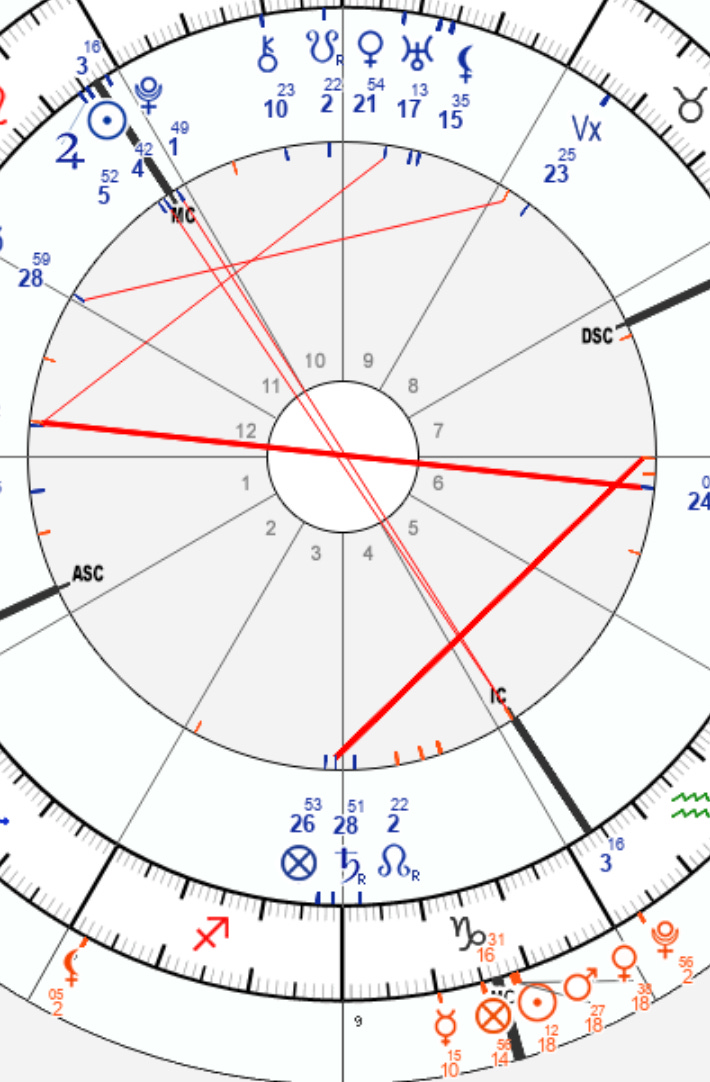 In fact, Uranus in the 8th was trine Pluto in the 12th; whilst this is a highly energetic and revolutionary aspect, it leans more positive in traditional astrological interpretation.