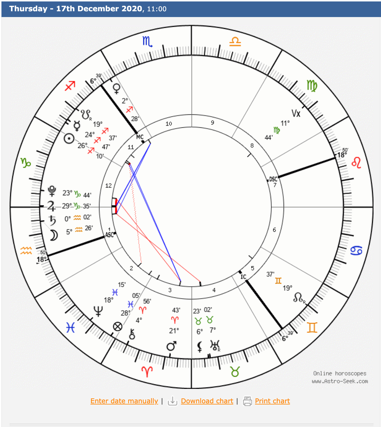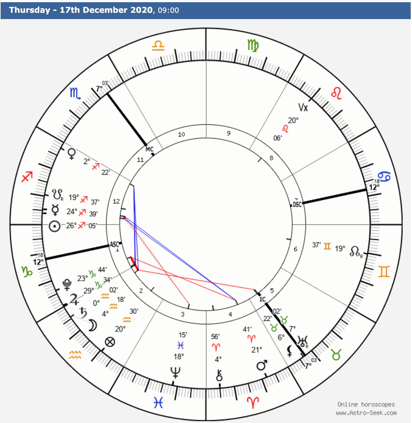 Chart one, the 09:00am chart has a Capricorn Ascendant, Aquarius Moon in the 2nd house and a Sagittarius Sun in the 12th house. The Ruler of the 10th house of career is in the 12th house. I think we’re fairly accurate here because I’ve researched various cryptos which usually has Aquarius as part of the Sun, Moon or Ascendant. For example, Bitcoin with 5 planets in Aquarius, or Dogecoin which has it’s Moon in Aquarius.