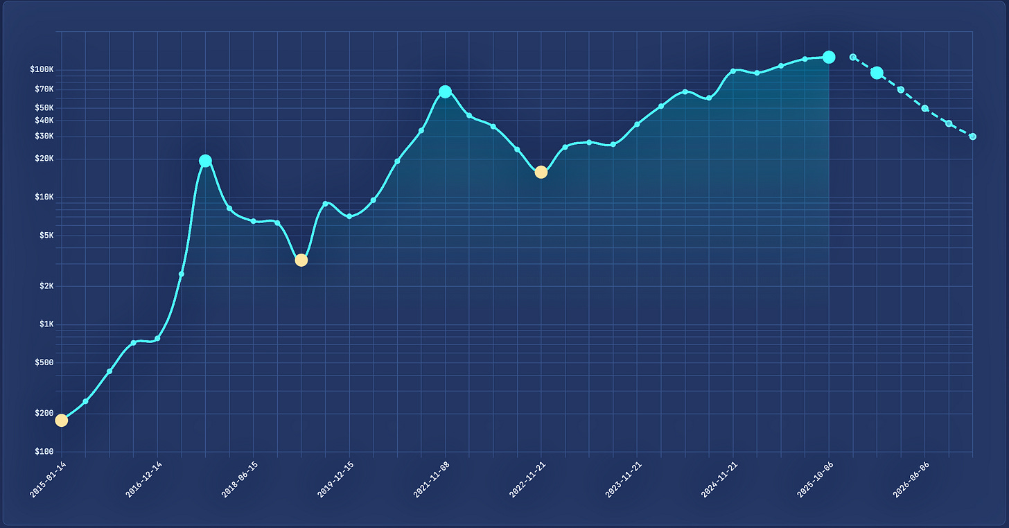 The 1064/364 Day Bitcoin Cycle pattern also implies a bearish year for Bitcoin, with implied lows of sub $50,000 by October 2026. I don’t think we see any lower than $45,000 due to mass adoption of Bitcoin by institutions and ETF’s.