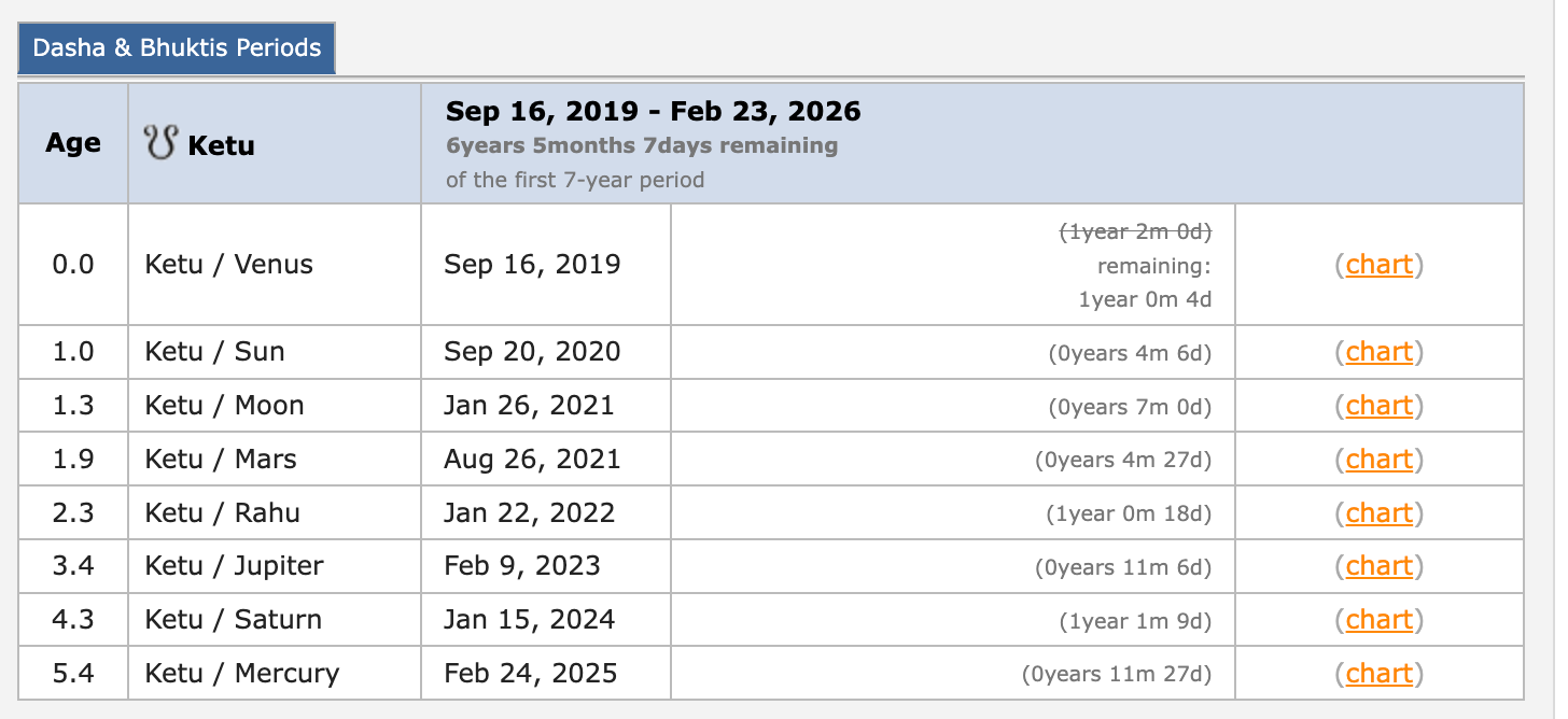 Currently it’s in a Mercury sub-period. Ketu is nicely placed conjunct Saturn in the 10th, but it’s giving a certain hidden away, tucked away, introverted theme in it’s public reputation. It’s not widely known about yet. Mercury is in a Kendra (Angular) house nicely placed in the 7th house of business, relationships and one to one interactions in the sign of the marketplace conjunct beneficial Venus. Ketu doesn’t own a house, but mercury owns the 3rd and the 6th, so there is a lot of ground work, learning, education and daily grind to get this project on it’s feet and to the public since 2019, which isn’t surprising.