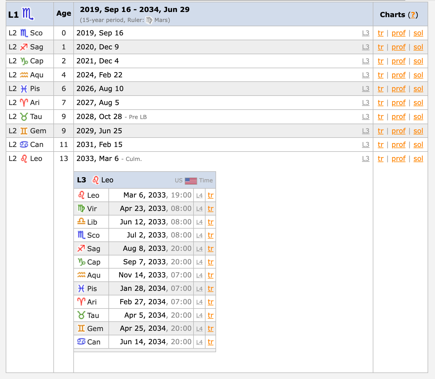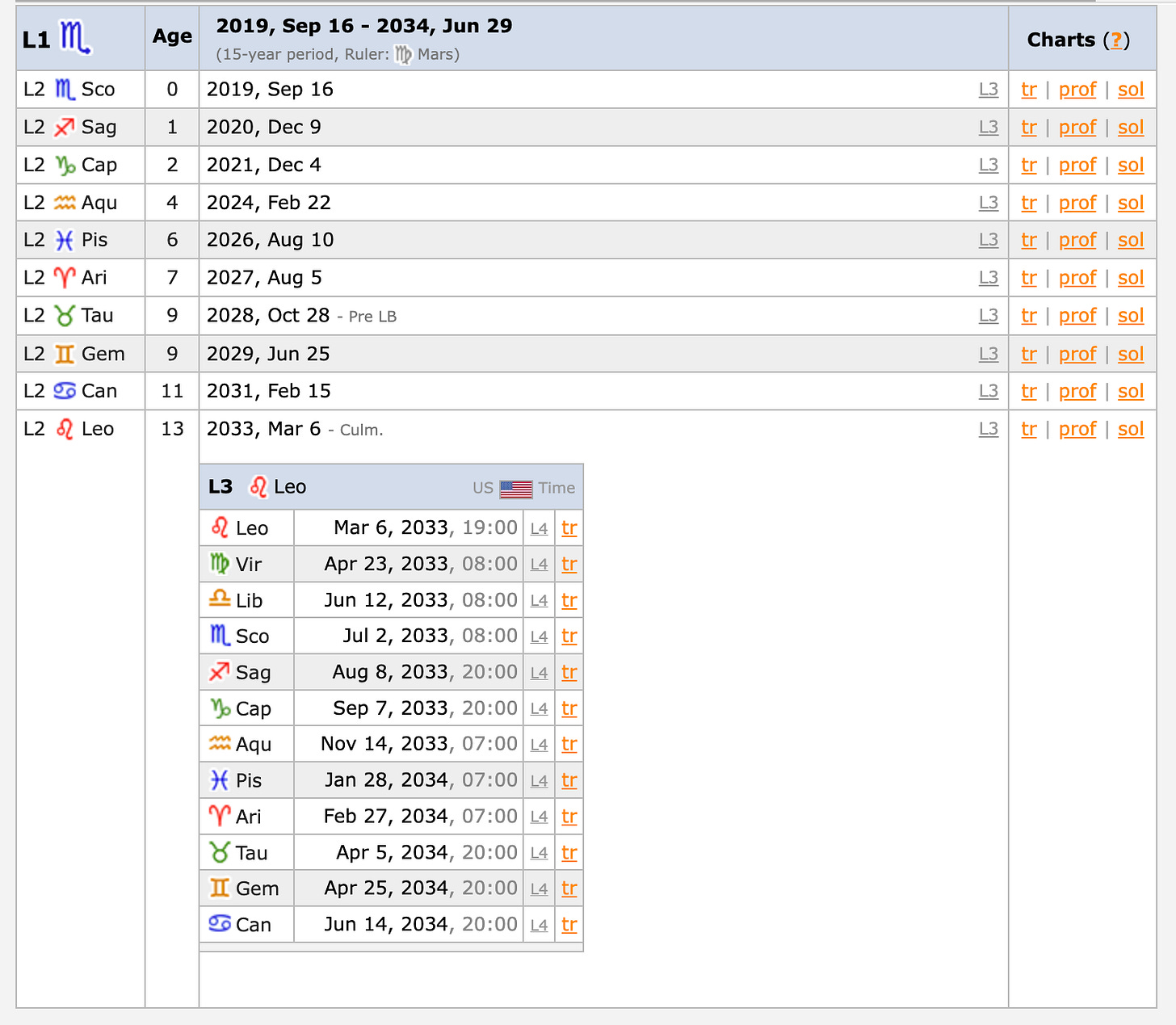 Looking at the Zodiacal Releasing, and by releasing from the lot of spirit, we see HBAR has a culmination point for this chapter of it’s life around March 6th 2033.