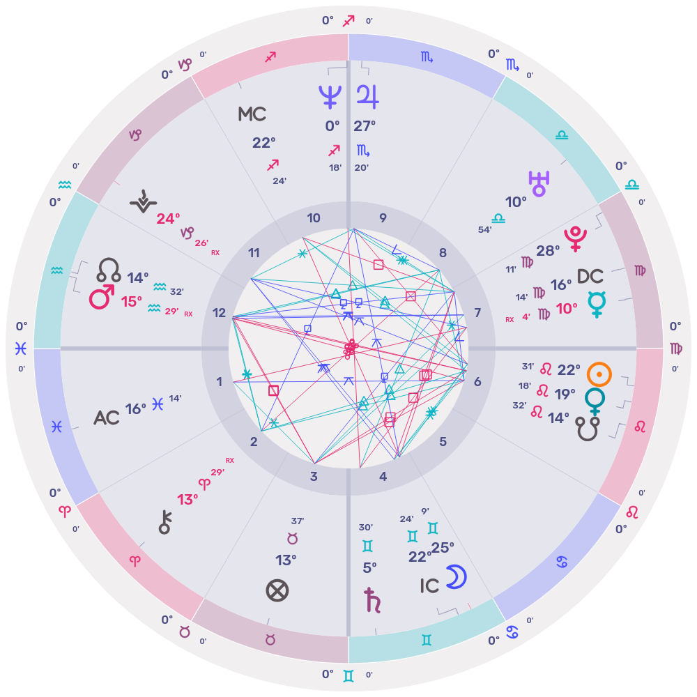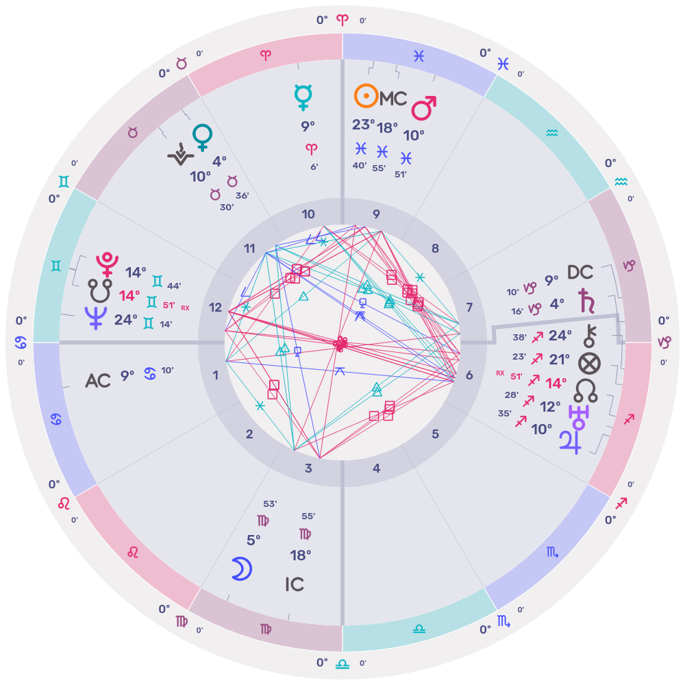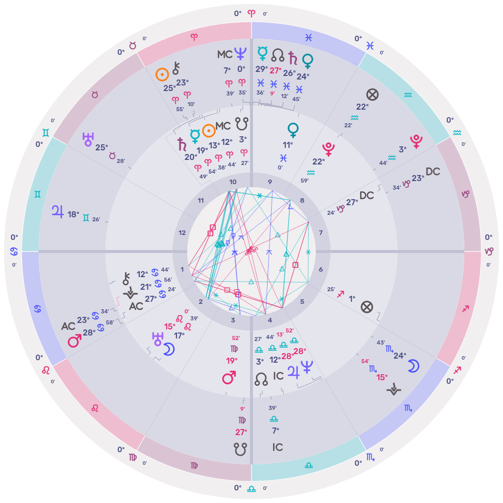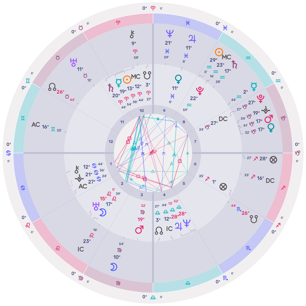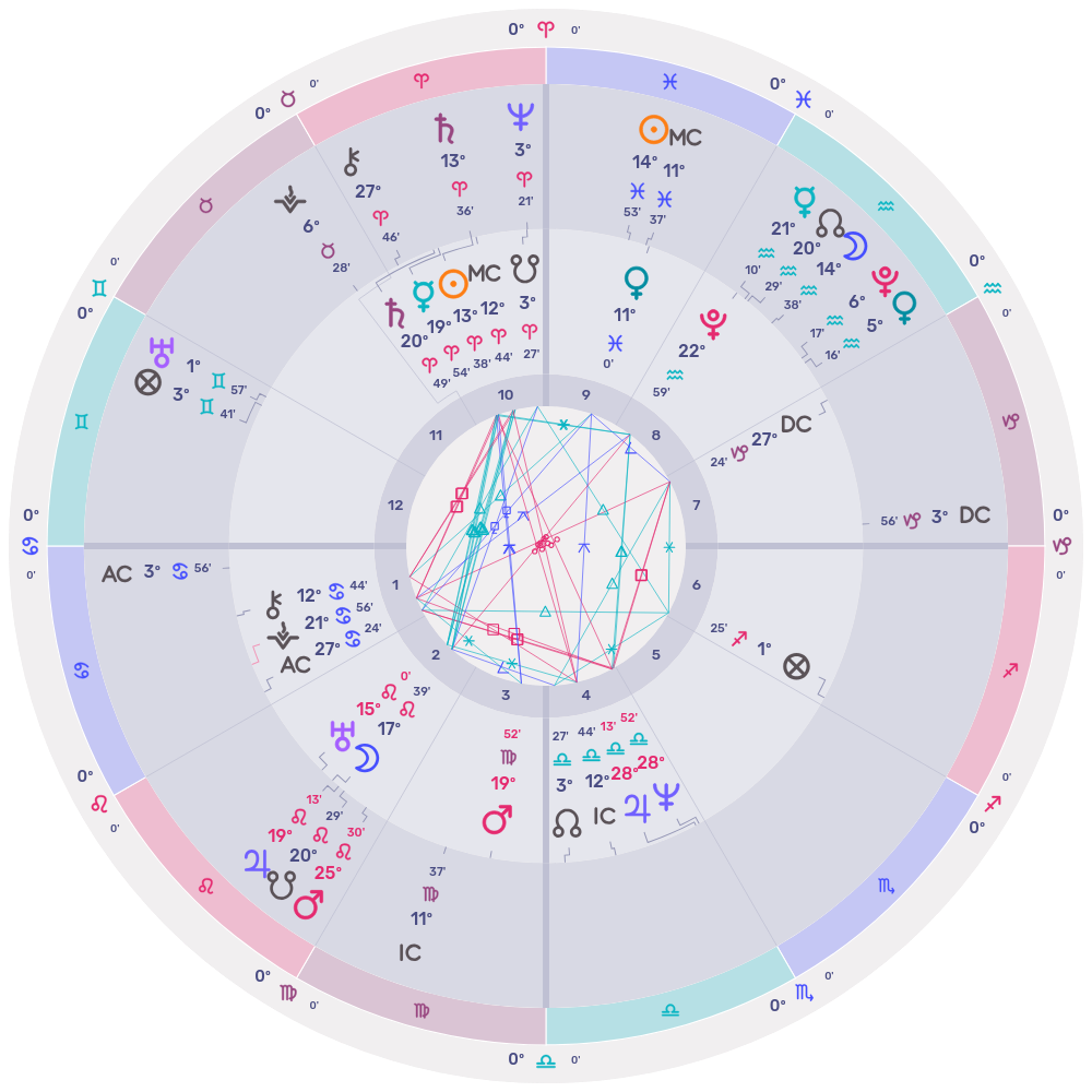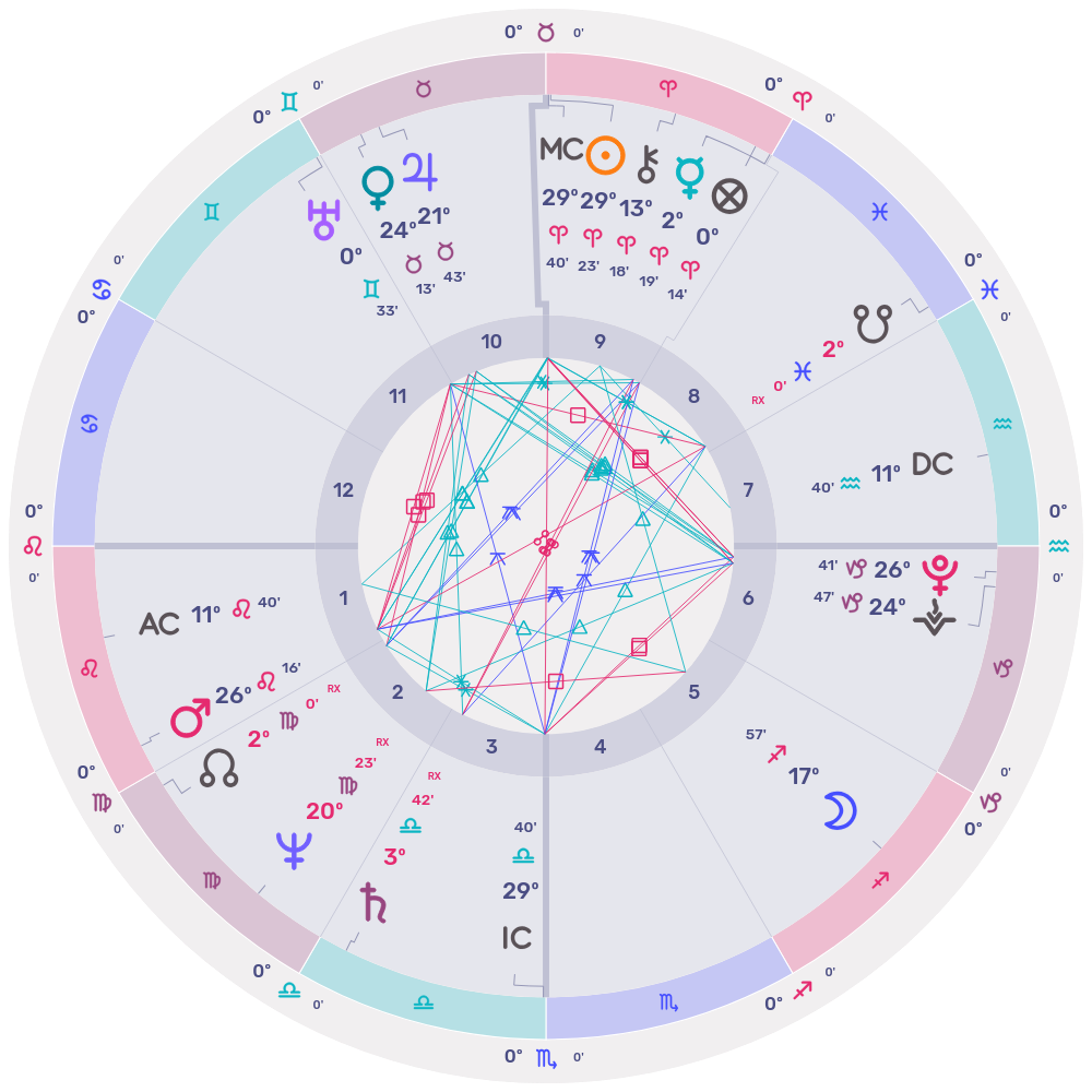 The sun also highlighting the focus on everyday money and resources for this chart. The 2nd house ruler is in the 1st, the the Moon is in the 8th house of crisis, debt and investment money ruled by Venus in her own sign in Taurus in the 3rd. It’s actually a fairly mixed bag, with some positive and negative elements.