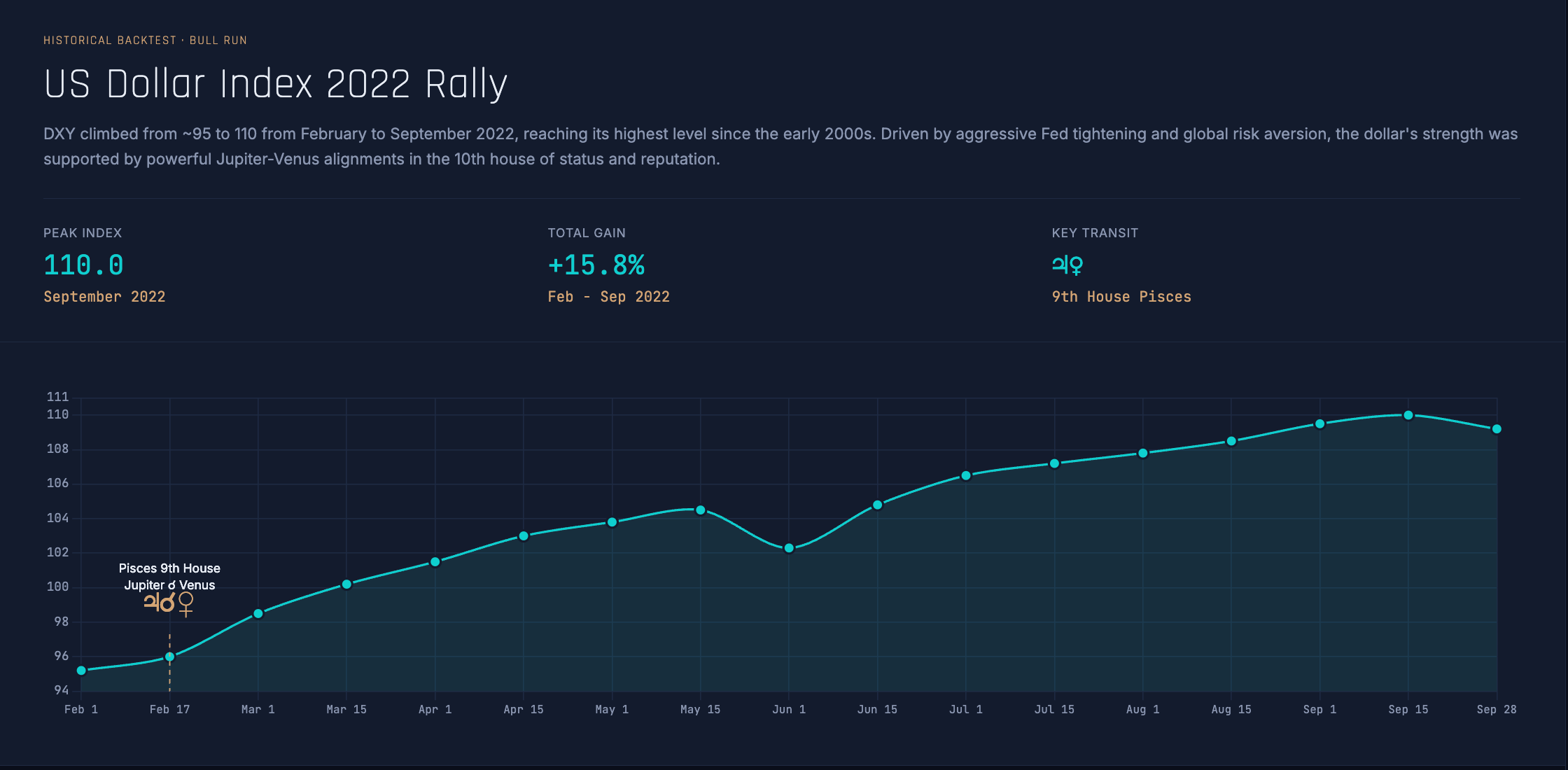 We’ll visit the key astrological signatures here later, but first we must backtest the chart to see if it is responsive.