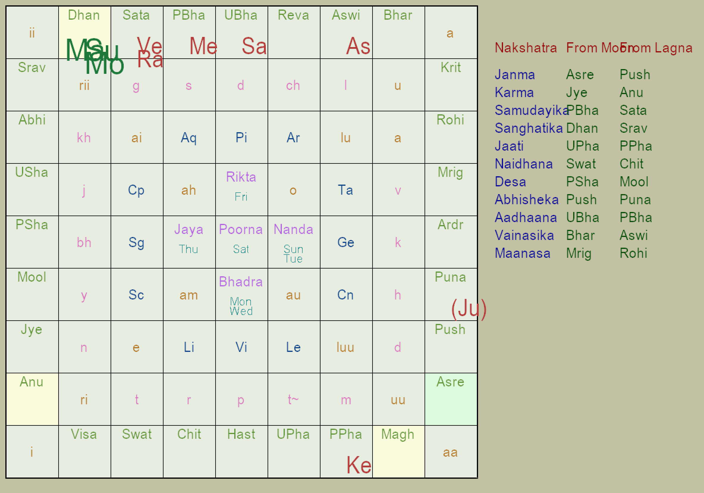 Whatever the events follow the February 17th Solar Eclipse in Aquarius, if we use the Sarvatobhadra Chakra to look at the veda (aspect) of different planets on the Janma (or Moon) Nakshatra of our dollar chart - you can see there is aspect from Mars, Sun and Moon on Ashlesha Nakshatra, the Moon nakshatra in the US dollar chart.