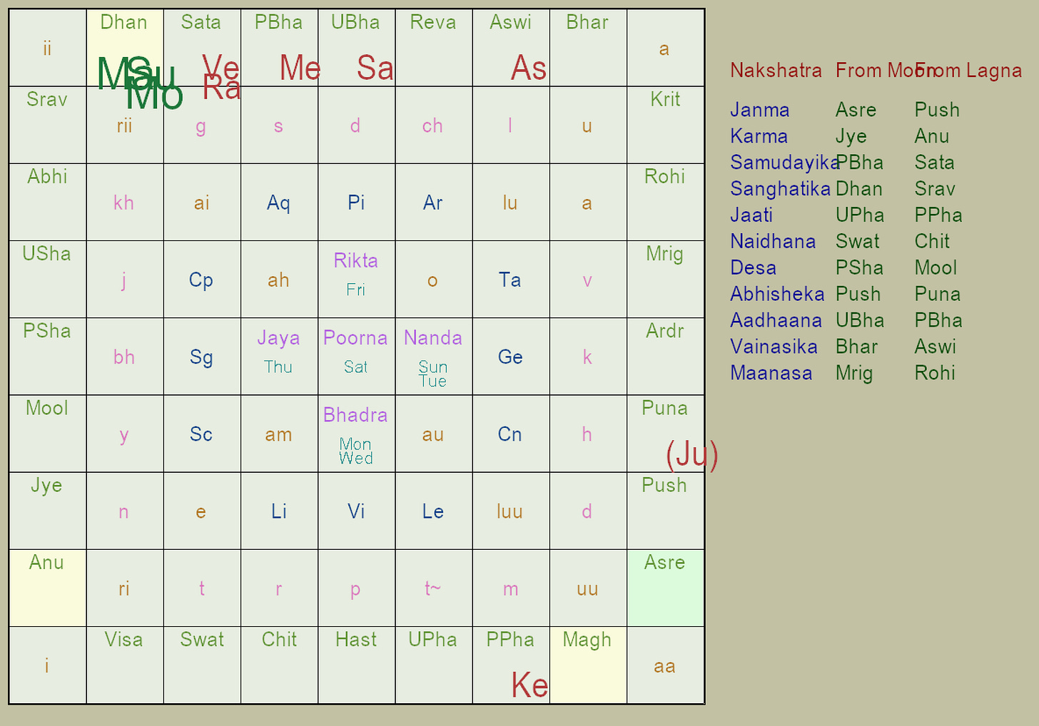 VARSHAPHALA CHART FOR THE US DOLLAR